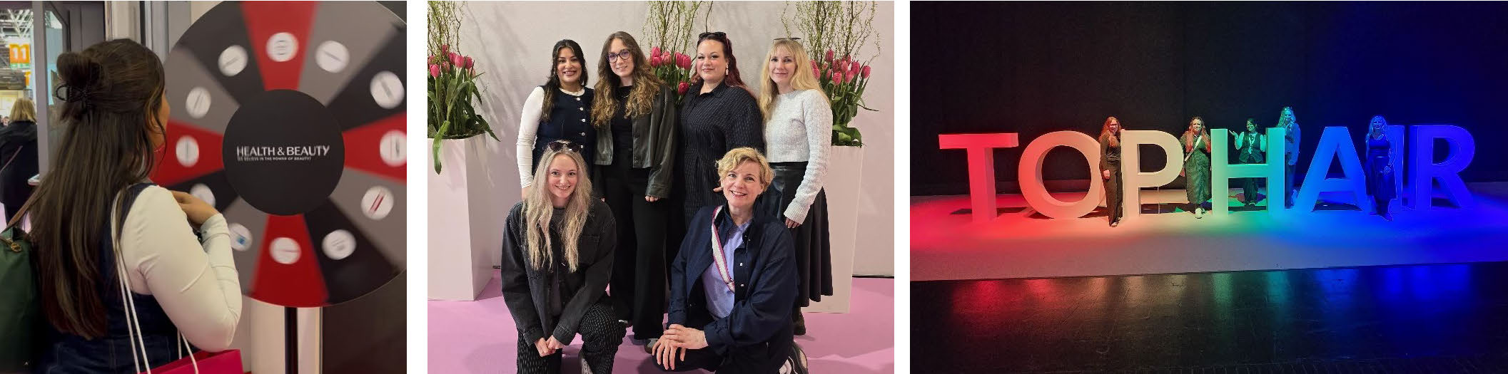 Im Anschluss besuchten wir direkt gegenüber die Top Hair Messe, die ebenso viele Highlights bereithielt. Auch hier konnten wir neue Produkte kennenlernen, uns inspirieren lassen und an verschiedenen Aktionen teilnehmen – vom Styling bis hin zu kreativen Gewinnspielen.